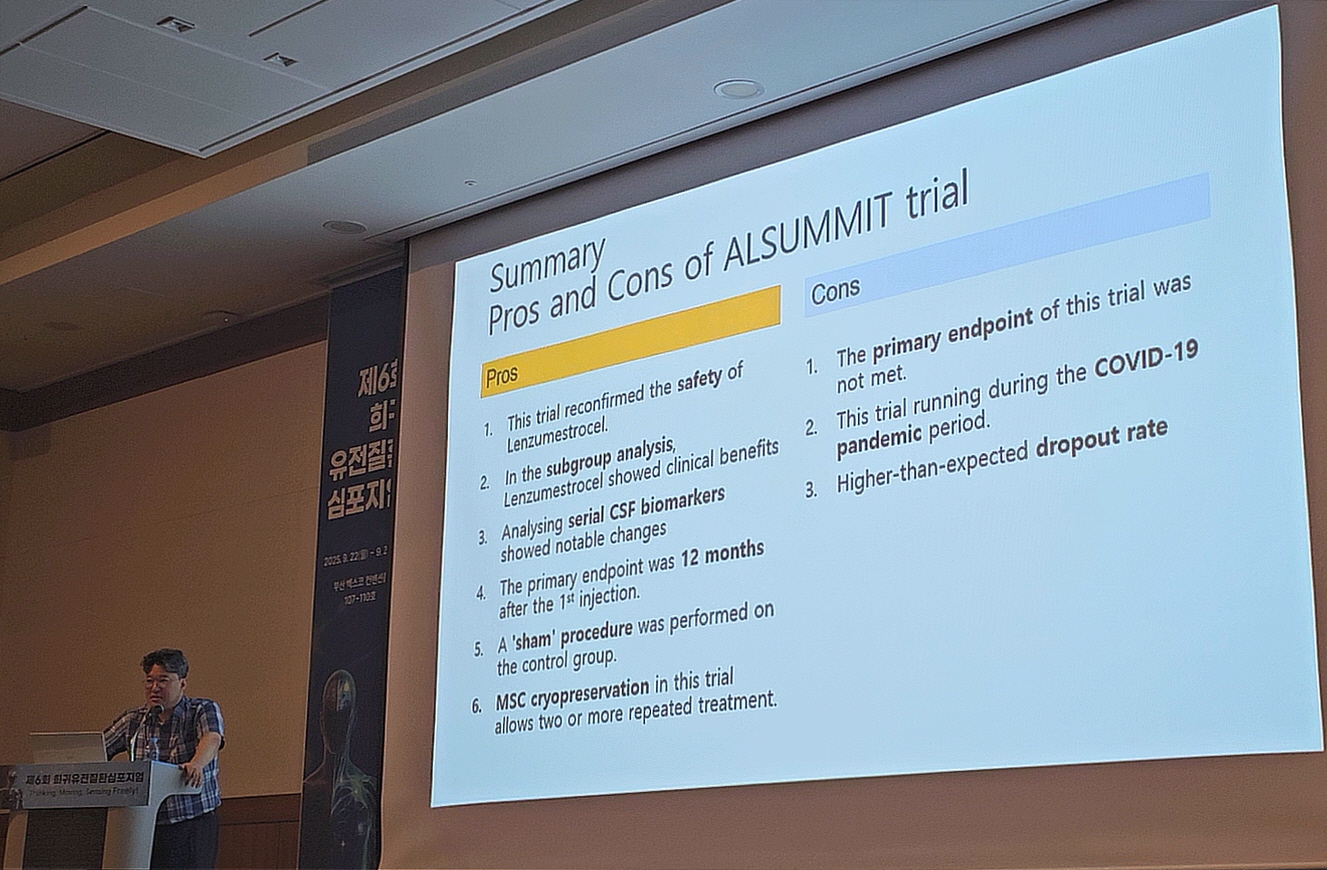 오 교수는 “전체 모집단에서 1차 평가지표를 충족하지 못했으나, 저속 진행 하위군(subgroup)에서는 임상적 유의성이 반복적으로 확인됐다”며 “특히 NfL·MCP-1 등 바이오마커 분석에서 긍정적인 변화가 관찰돼 향후 치료 전략 수립에 의미 있는 근거를 남겼다”라고 평가했다.